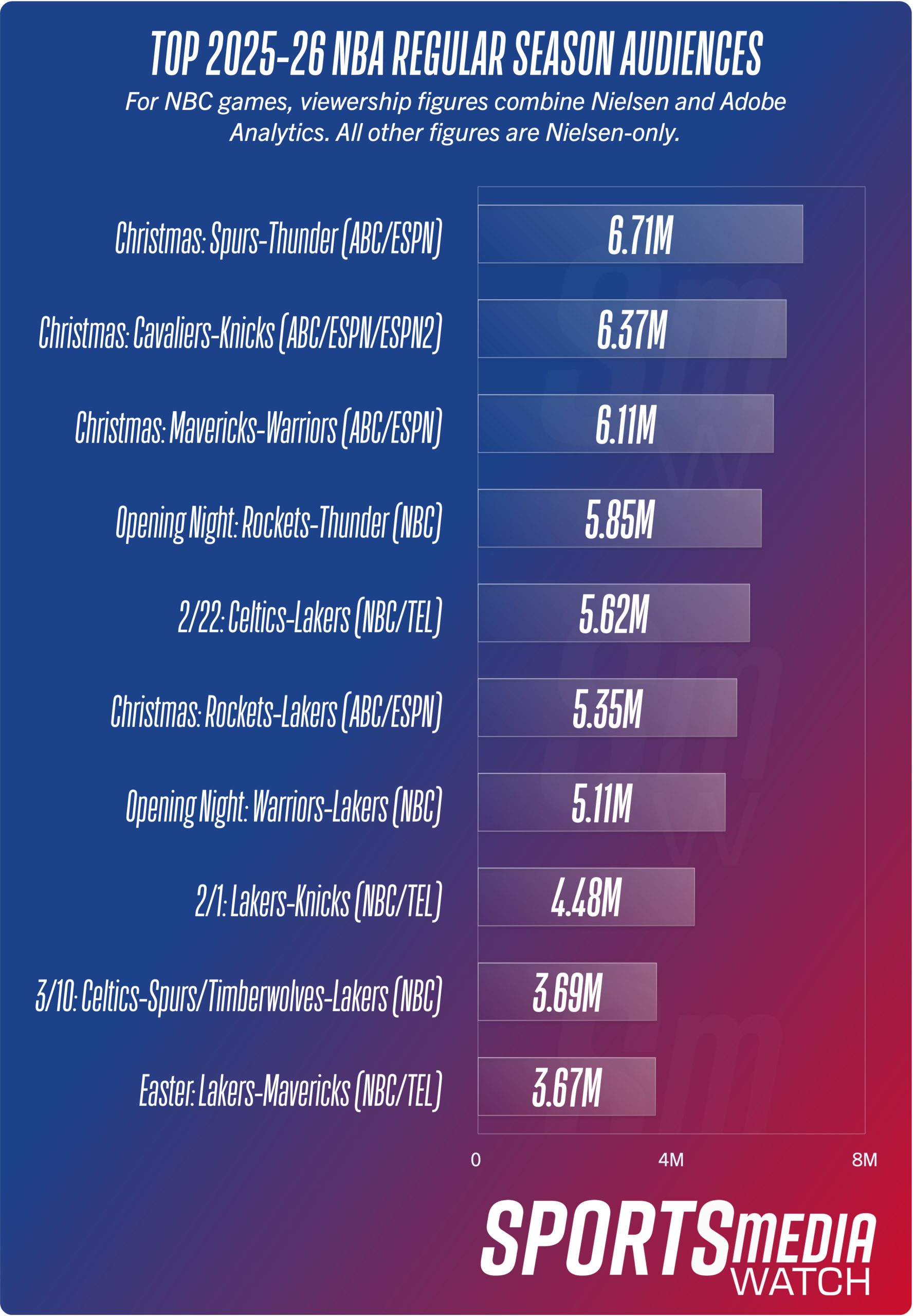 Most-watched NBA games, 2025-26 regular season