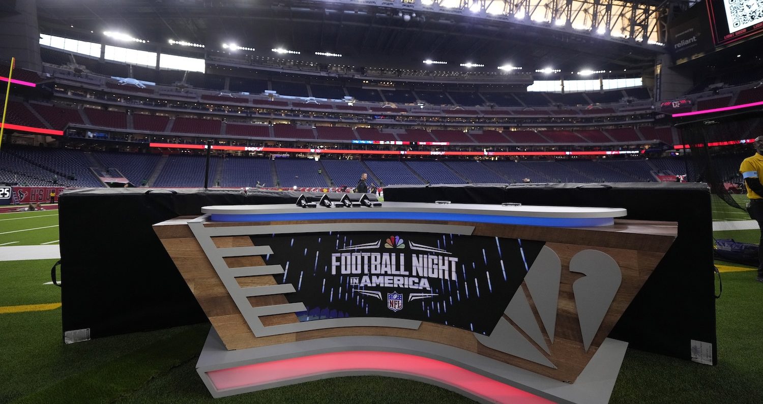 The Football Night in America set is seen before an NFL football game between the Houston Texans and the Detroit Lions, Sunday, Nov. 10, 2024, in Houston. (AP Photo/David J. Phillip)
