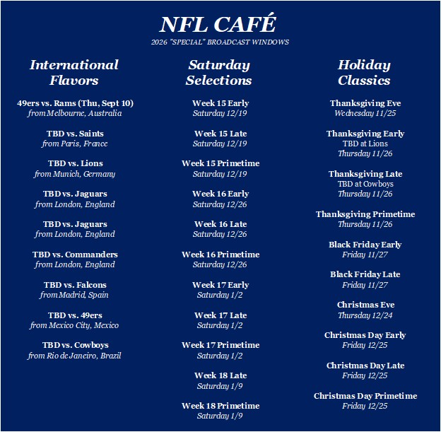 A list of the NFL's "special" broadcast windows for the 2026 season.